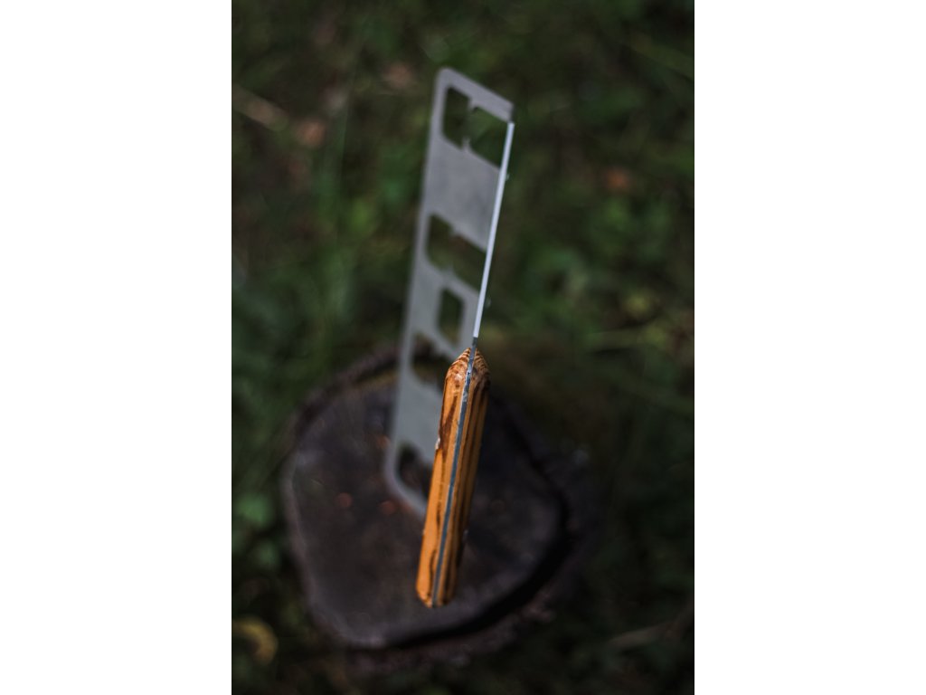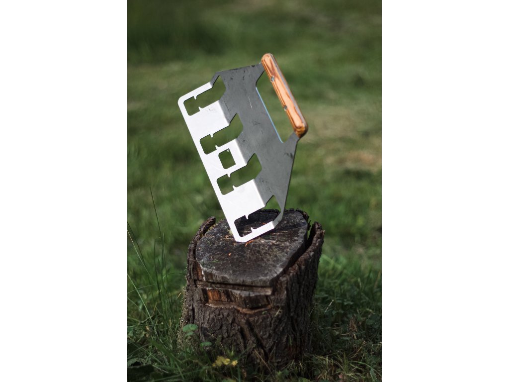 Poctivě opracovaná rukojeť z masivního dřeva, ručně opalovaná plamenem, padne krásně do ruky a každý kus má svůj originální vzhled.